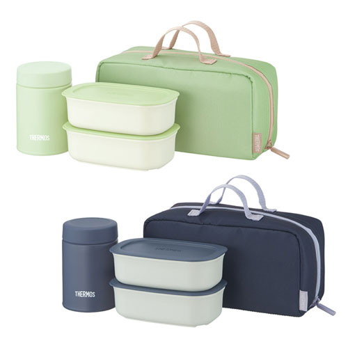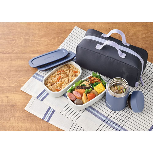 - スープ、ごはん、おかずを自由に組み合わせられるランチセット。200mlのスープジャーと300mlのお弁当箱2個に専用ポーチが付属。温かさと冷たさをどこでも自由に楽しめます。