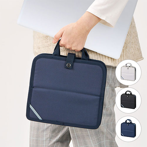 - モバイルアクセサリーやステーショナリーなどを纏めて持ち歩くのに非常に便利な収納バッグ。ボディカラーはブラック、ネイビー、グレーの3色展開。