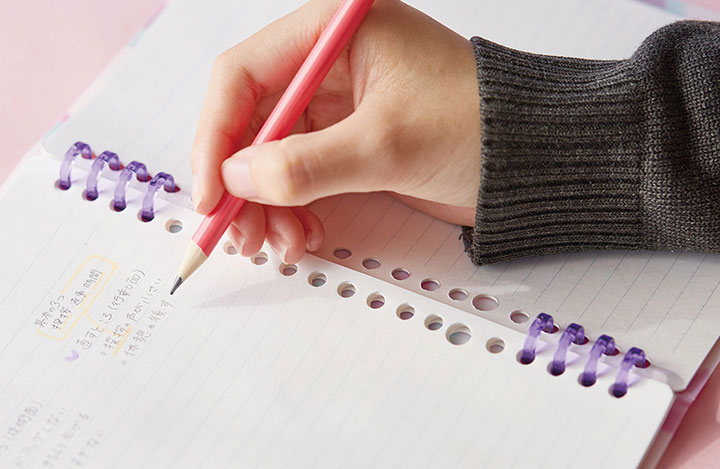 リング部分に手が当たらない設計になっているため、書いている最中にストレスを感じることなく筆記できます。