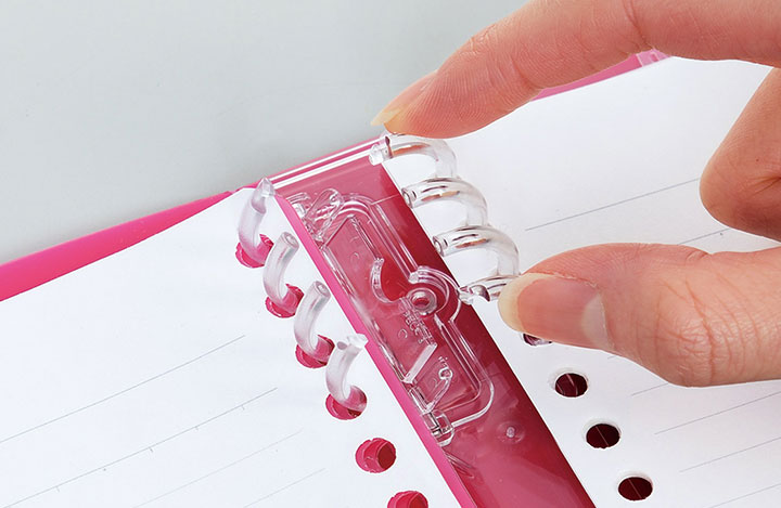リーフの差し替えや追加が、ワンタッチで簡単に開閉できる構造になっているため、ページをすぐに入れ替えられます。