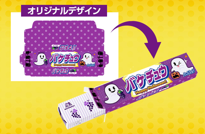 ジューシーな味わいと独特の噛みごたえが特徴の、日本だけでなく海外でも人気のロングセラーソフトキャンディ「ハイチュウ」グレープ味をオリジナルパッケージでお作りいたします。