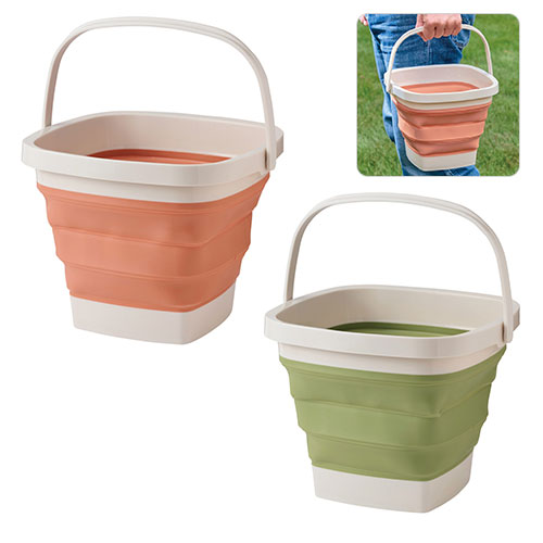 名入れ不可10リットルサイズの取っ手付き折りたたみバケツです。コンパクトの折りたたむことが出来るため、収納場所に困らず非常に便利。アウトドアシーンや災害時用などにも役立ちます。