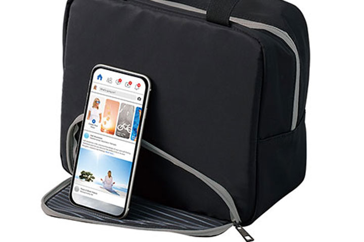 名入れ・ロゴ入れ可外側のファスナーを開けるとスマホスタンドとして利用できる、新発想のランチバッグです。4層構造でしっかり保冷してくれるため、特に暑い夏の時期などには重宝するアイテムです。