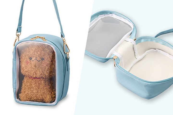 中身の見えるクリア素材を前面に持ってきたことにより、お気に入りのぬいぐるみや推し活グッズをいつでも眺めることができるシンプルなポーチです。ダブルファスナーで大きく開く口も◎!