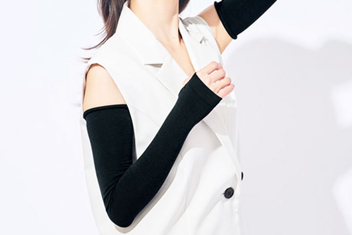 女性らしい繊細さと上品さをシワ加工で表現した、見た目にもオシャレなアームカバーです。夏の強い紫外線から腕をしっかり守ってくれます。夏イベントのノベルティ等におすすめです。
