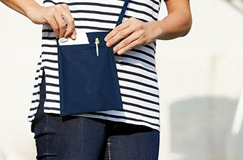名入れ可能バッグの中でもかさばらない!薄くて軽い横長長方形タイプのミニポーチ。開口部の両サイドを押すだけで開くことができて開閉が楽々。メガネケース・コスメポーチ・お財布などマルチで使えます。