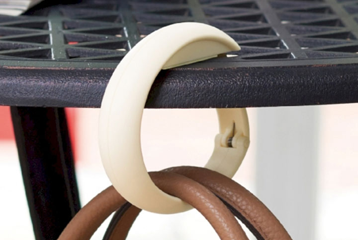 買い物中に荷物カゴがないお店でも、バッグを床に直置きせずに済む便利なバッグハンガーです。普段からバッグの持ち手にリングとしてつけておけば、使いたいときにサッと取り出せます。