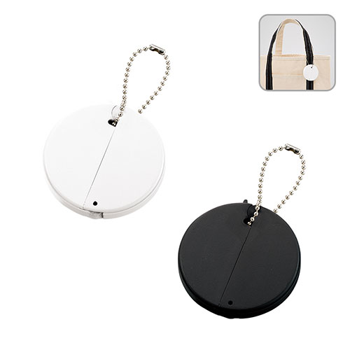 名入れ・ロゴ入れ可フルカラー印刷キーホルダーとして持ち歩くことができ、カフェなどのテーブルの端にバッグをかけるフックにさせられる便利アイテムです。ブラックとホワイトの2色展開。お好みでお選びください。