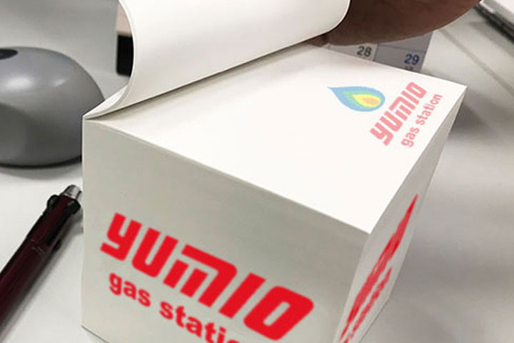 名入れ・ロゴ入れ可フルカラー印刷自宅やオフィスで重宝するブロック型のメモ帳。4側面にコーポレートカラーを鮮やかに表現したプリントが可能です。1枚ずつスムーズに剥がせるのに高強度なこだわりの糊を使用しています。