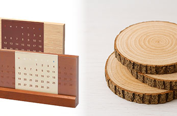 名入れ・ロゴ入れ可フルカラー印刷ゴムの木の廃材を素材にして作られた温かみのある万年カレンダーです。カラー展開はナチュラルウッドとダークウッドの2色。フルカラー名入れが可能ですのでデザインに合わせてどうぞ。