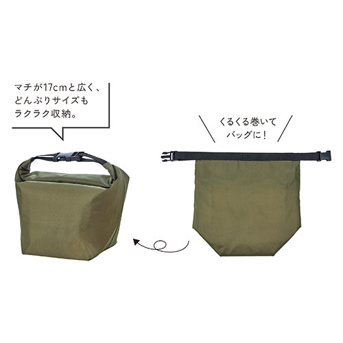 テントクロス生地を使った小さく畳める保冷温ランチバッグ。丈夫でしなやかな生地で雨や汚れに強く、保冷温効果抜群!マチ付きで底が広く、中身に合わせてくるくる巻けば高さ調整が可能です。