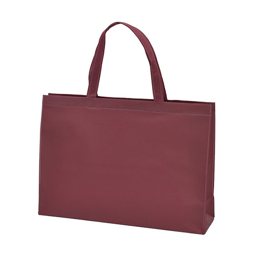 横長長方形でミドルサイズのトートバッグ。中身が透け難い厚くて丈夫な不織布を使用。底と横が広がり、厚紙の底板付きです。オリジナルの名入れやプリントをして物販品や販促にご使用ください。