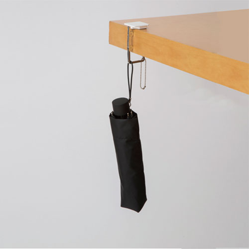 キーホルダーとして持ち歩くことができ、カフェなどのテーブルの端にバッグをかけるフックにさせられる便利アイテムです。ブラックとホワイトの2色展開。お好みでお選びください。