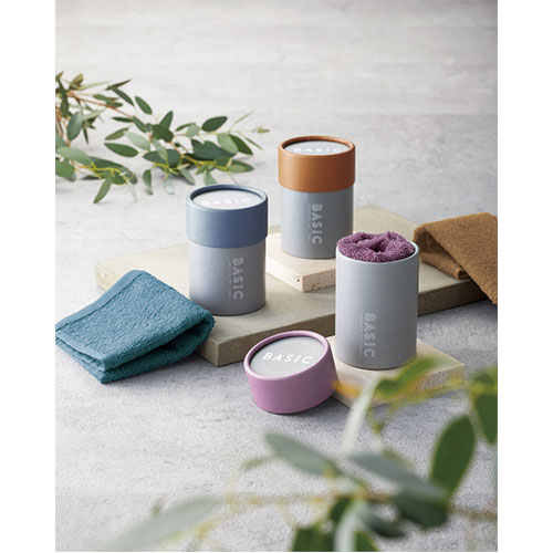 シンプルでシックで、おしゃれな円筒形のボックス入りハンカチタオルです。200×200mmサイズのハンカチタオルは使い勝手も良く、またボックスはペン立てとしても利用可能です。