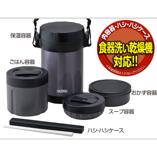 ストラップ付きで持ち運びやすいサーモスのステンレスランチジャー。ごはん3.8杯分・おかず・スープを適温で持ち運べます。電子レンジも使用OK!保温容器は丸洗いもできて衛生的です。