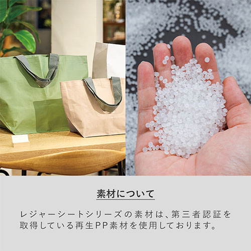 Lサイズのシンプルなトートバッグです。再生PPを使用しているため環境にも優しく、軽量で耐久性に優れている点も使い勝手抜群。全4色展開のカラーバリエーションから選択可能です。