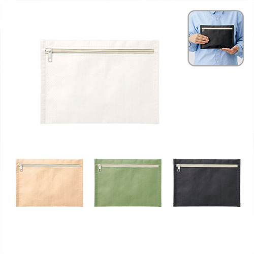 Mサイズのシンプルなレジャーポーチ。メイク道具などの細々としたものを纏めて持ち歩くのに便利。軽量なレジャーシート仕様な上、再生PP素材のため環境にも優しいアイテムです。