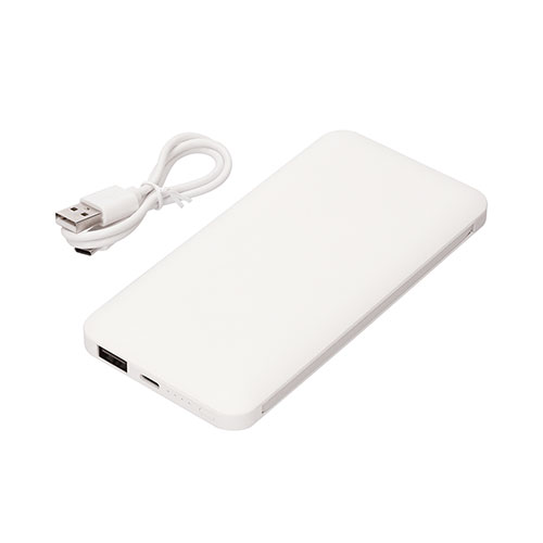 10000mAhの大容量モバイルバッテリー。シンプルですっきりとしたデザインのためオリジナルの名入れプリントも良く映えます。そのためノベルティや販促グッズとしても優秀です。