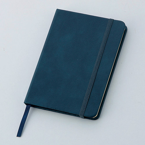 A6サイズの、レザー調のハードカバーが高級感あるノートです。カラーバリエーションはネイビー、ブラウン、ブラックの全3色展開。ノベルティ用や景品用などにおすすめです。