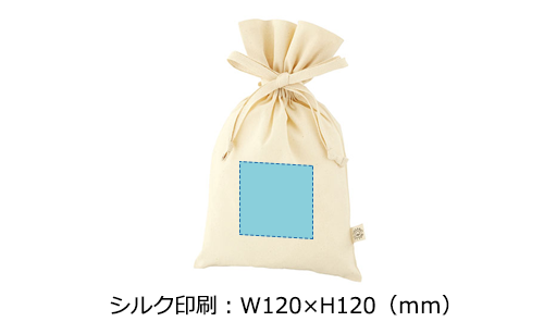 Mサイズの非常にシンプルながら風合いの良いオーガニックコットン素材のギフト巾着。3.5オンスの比較的薄手な素材のため、コットン生地ながらも軽量で、ショッパーなどにもおすすめです。