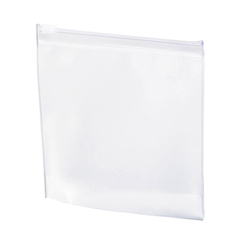 Sサイズのガゼットファスナーポーチです。梨地のクリアなビニール素材を使用しているため上品な透け感がオシャレ。小物をまとめて持ち歩くのには非常に便利でノベルティグッズとして人気です。