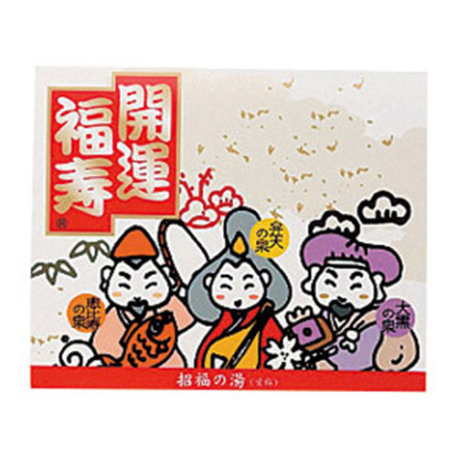 福を招くおめでたいキャラクターたちが可愛く描かれたパッケージが印象的な入浴剤の2包セットです。健康をテーマにしたイベントやキャンペーンのちょっとしたノベルティ用などにおすすめです。