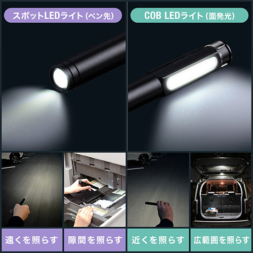 サンワサプライ ペン型LEDライト USB充電式 LED懐中電灯 マグネット内蔵クリップ 防水規格IP54 最大300ルーメン