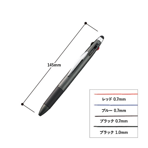 3色(黒2本)+タッチペンで日常使いにも非常に便利なスリムペンです。再生ABS素材を使用し作られているため環境に優しいアイテムである点も◎!全5色展開から選択可能です。