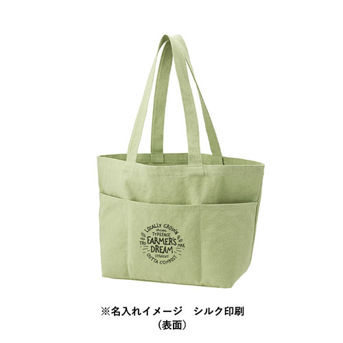 Lサイズの、ライトウォッシュキャンバス生地を使用したトートバッグです。外側にある3つのポケットが非常に便利!全4色のカラーバリエーションからお選びいただけます。
