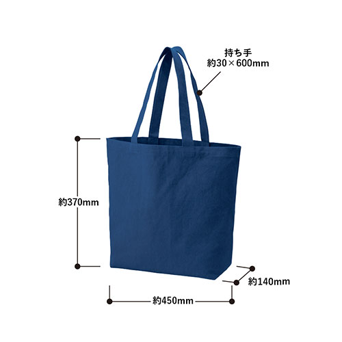 Lサイズのシンプルなトートバッグです。13オンスのライトウォッシュキャンバスを生地に使用しており耐久性にも優れているため、日常使いにもぴったり!物販用などにもおすすめです。