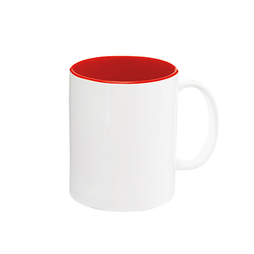 どんなフルカラーデザインも鮮やかに仕上げられる真っ白い外側とは対照的な内側のバイカラーが見た目にもオシャレな陶器マグカップ。内側のカラーは全3色展開から選択可能です。
