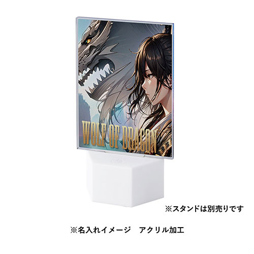 Lサイズの、ライティングスタンド用3mmアクリルプレートです。鮮やかなフルカラープリントはもちろん、形状もオリジナルで切り抜くことが可能。存在感のあるアイテムです。