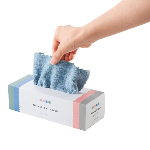 ティッシュのように使いたいときにサッと取り出せるお掃除クロス12枚組です。キッチン周りはもちろん、テーブルや窓拭き、またメガネ拭きとしても利用可能で非常におすすめです。