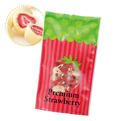 イチゴをホワイトチョコレートで包んだ、甘みの酸味が絶妙でとっても美味しいお菓子です。バレンタインイベントやキャンペーンの特典用、ノベルティ用などにもおすすめの商品です。