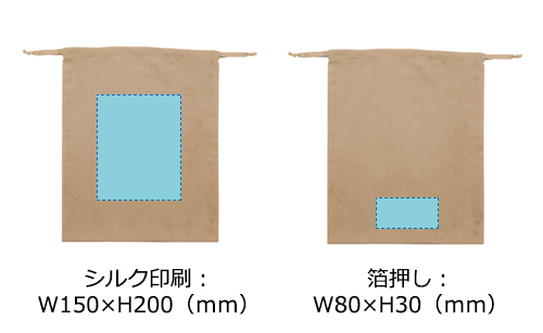 スウェード調の生地感がさりげなくもオシャレさを醸し出すLサイズの巾着です。シンプルなアイテムのためオリジナル名入れもよく映え、販促用としても非常におすすめのアイテムです。