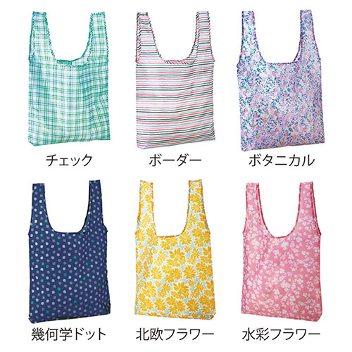 個性豊かで華やかなデザインが目を惹くポータブルエコバッグです。マチ付きのため見た目以上に容量も豊富でお買い物には最適!イベントやキャンペーンのノベルティ用としておすすめです。