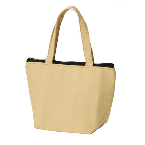 一般的なお弁当箱なら平置きで入れることが出来、ランチ用などには最適なコンパクトバッグ。内側はアルミ蒸着フィルムで保冷温効果が高く使い勝手が良いため、ノベルティ用などにも人気です。