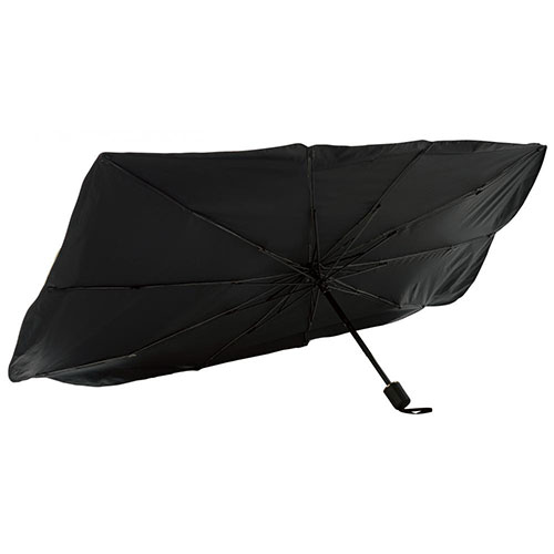 折りたたみ傘のように手軽にパッと開いたり閉じたりできる車用サンシェードです。車内の温度上昇を緩和できるため、暑い夏には非常に便利。車系イベントの特典用などにもおすすめ。