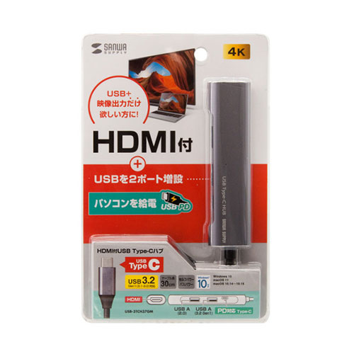 サンワサプライ HDMIポート付 USB Type-Cハブ