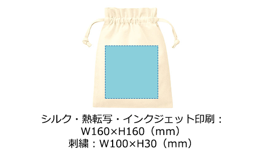 厚手のコットン生地で口元のフリルデザインがかわいらしいSサイズの巾着。文房具の収納や、トラベルポーチにも最適です。フルカラー印刷OKでノベルティ・物販品などにオススメです。