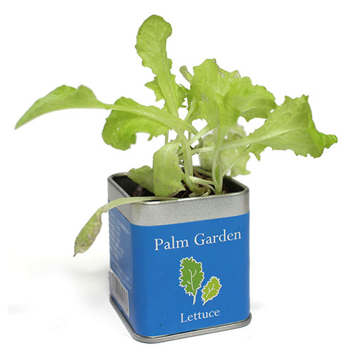 手の平サイズのオシャレでカワイイ角型缶が特徴的な栽培キットです。食べられる植物を中心に22種類の中からお選びいただけます。缶のラベルはオリジナルプリント可能で販促用にもおすすめ!