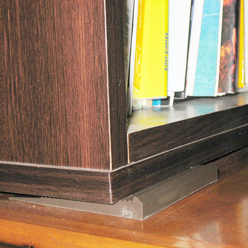 本棚やタンスなど、大きな家具の転倒を防いでくれる補助プレート4枚です。ジェル状のマットなどとは違い、家具を持ち上げる必要もなく、差し込むだけで設置可能なため、非常に便利です。
