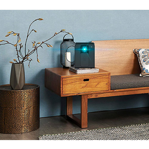 重量約1350gと非常に軽量なため、好きな場所に手軽に持ち運んで簡単に使うことができるLEDホームプロジェクター。投影サイズ25〜150インチと大迫力で映像を楽しめます。