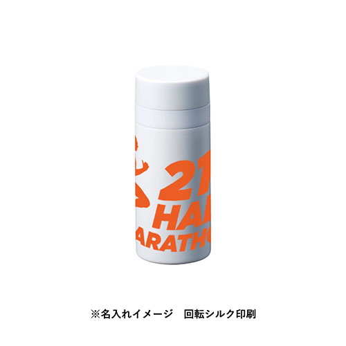 通勤通学時や散歩時の水分補給に最適な200mlサイズのサーモステンレスボトルです。すっきりとしたシンプルな形状のため、名入れプリントするどんなオリジナルデザインとも相性抜群!