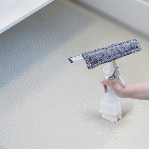 水切り、モップ、ブラシ、霧吹きの4つがこれひとつで出来る、非常に便利なお掃除アイテムです。お風呂場の掃除はもちろん、ブラインドなどにも対応可能なため幅広くご活用いただけます。