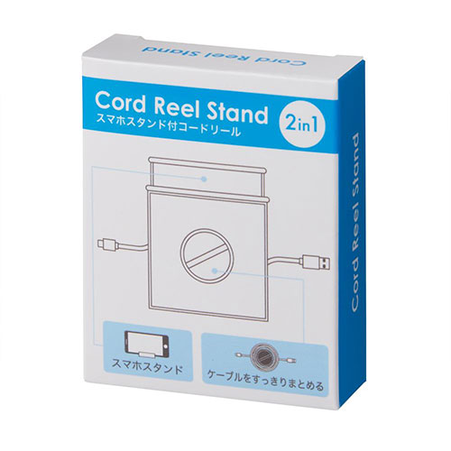 USBなどの絡まりやすいコードを巻き取ってすっきり収納することが可能なコードリール。さらに、その名のとおりスマホスタンドとしても利用できるため、デスク周りで大活躍します。