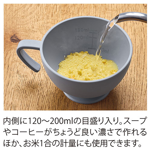 コーヒーやスープが簡単に適量で作ることができる目盛り付きが嬉しい抗菌マグです。目盛りはお米1合の計量にも使用可能。フック型の持ち手など見た目にもオシャレなアイテムです。