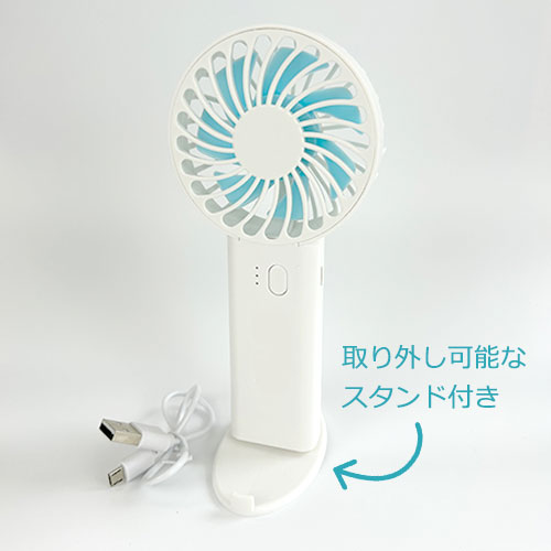 ハンディとしてもスタンドとしても利用可能な充電式のハンディファン。電池を入れる必要がないため軽量で持ち歩きに最適!昨今の暑い夏を乗り切る必須アイテムとして非常に人気の高い商品です。