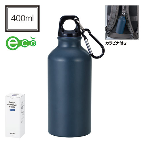 400mlサイズの、軽量で耐久性にも優れたアルミ素材のボトルです。キャップにはカラビナがついているため、バッグなどに取り付けることも可能。全4色のカラー展開からお選びください。