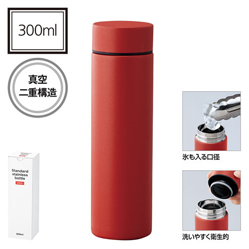 300mlサイズの真空ステンレスボトル。すっきりシンプルな形状とマットカラーがモダンでオシャレで、どんなオリジナル名入れも映えます。保冷温効果も高いため、日常的に使えます。